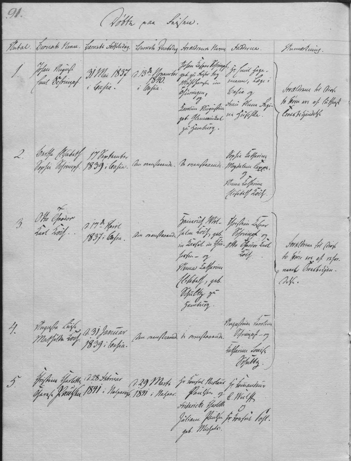 | 3 | Otto Theodor Karl Koch | d. 17de April 1837 i Bahia | den ovenstaaende | Heinrich Wilhelm Koch, geb. in Kassel in Churhessen – og Anna Catharine Elisabeth, geb. Schultz zu Hamburg | Christian Kaspar Schrimpf og Otto Theodor Karl Koch | Forældrene til disse to Børn ere af reformeert Troesbekjendelse |